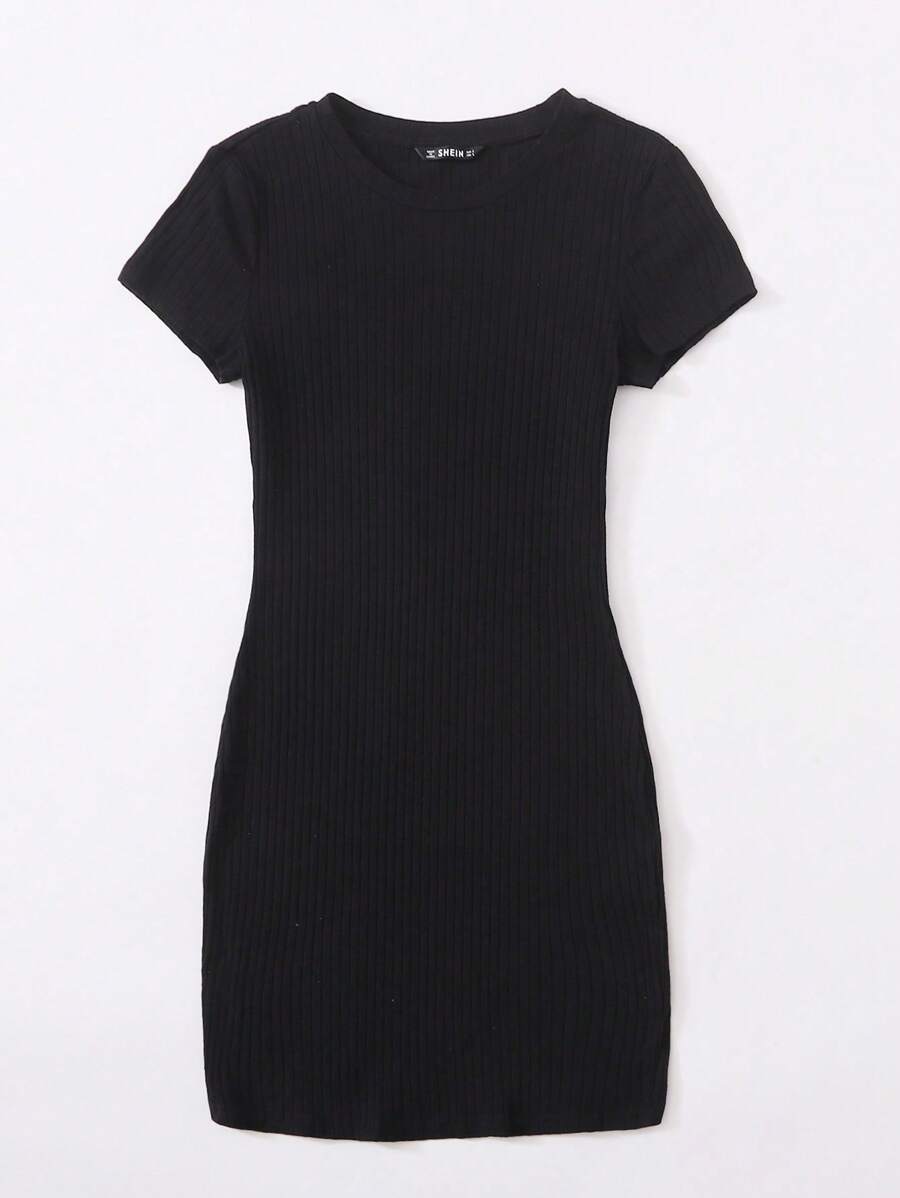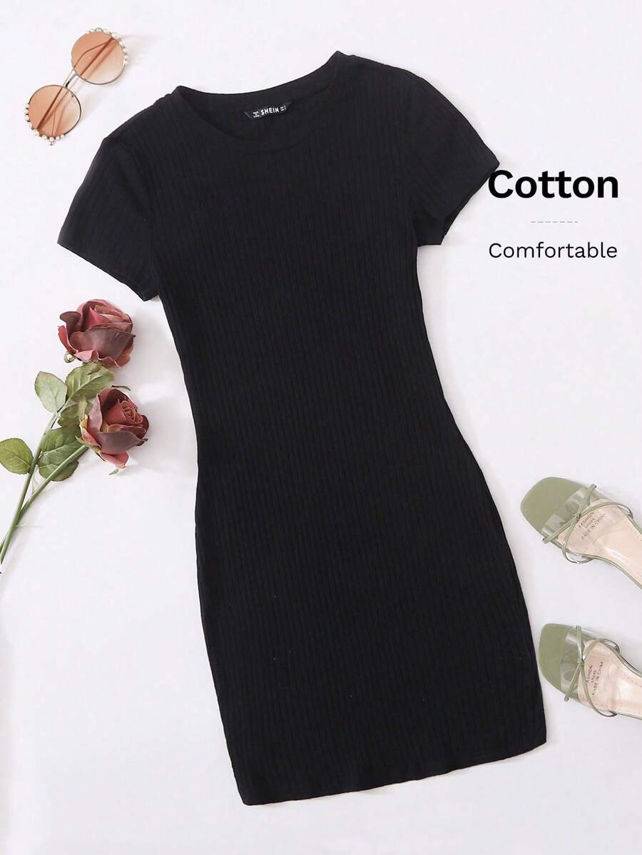Robe moulante côtelée unicolore