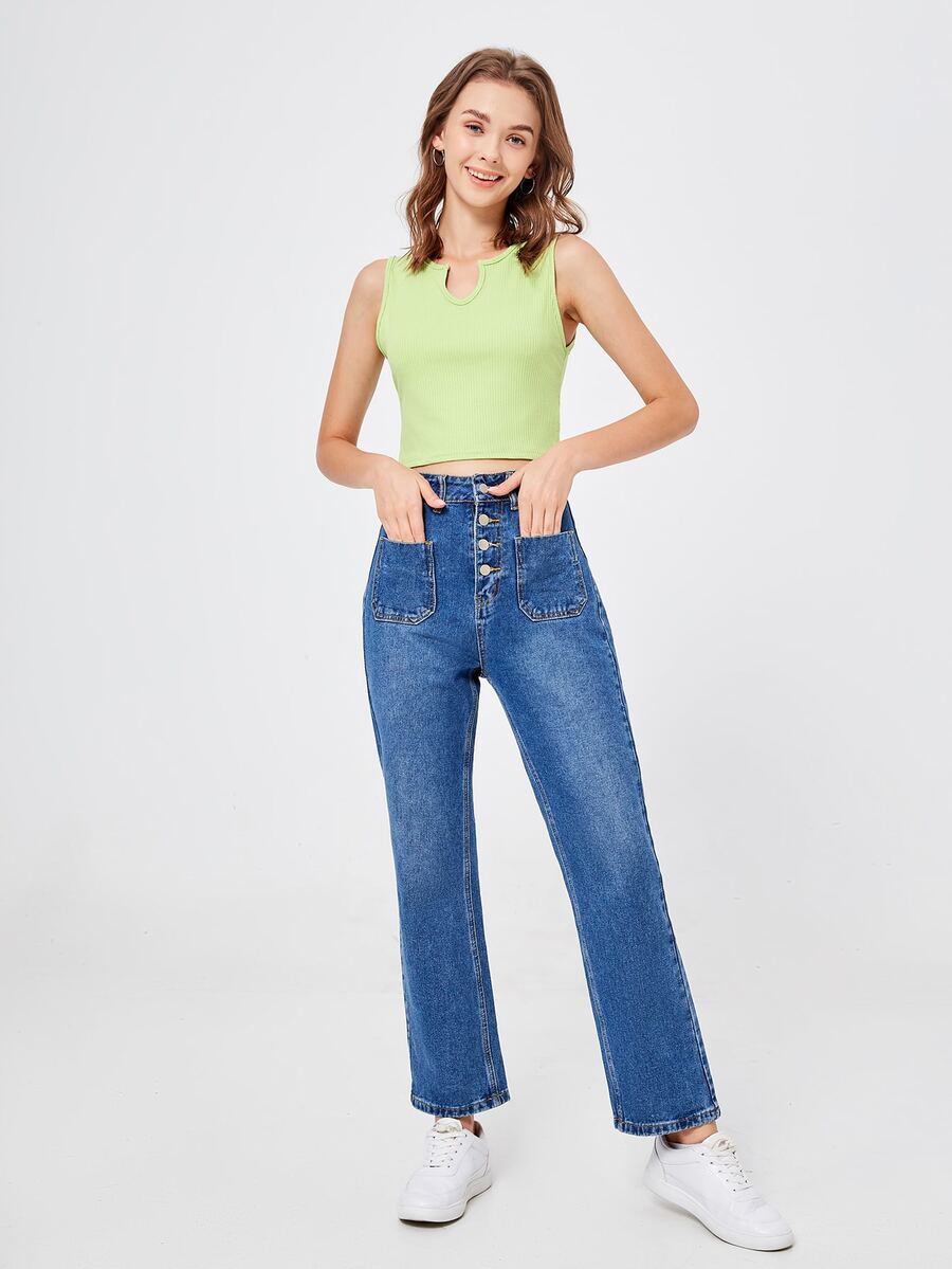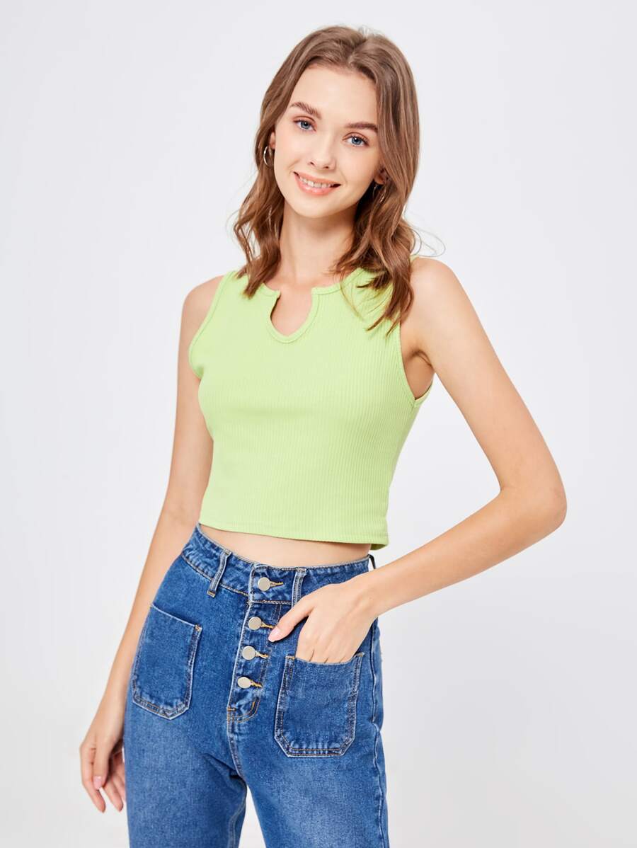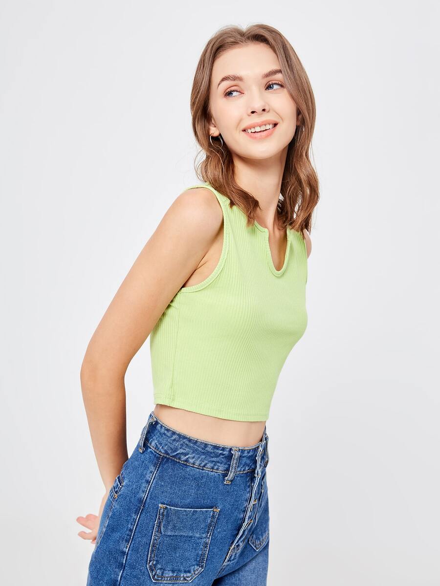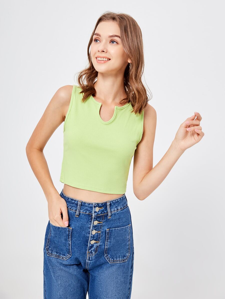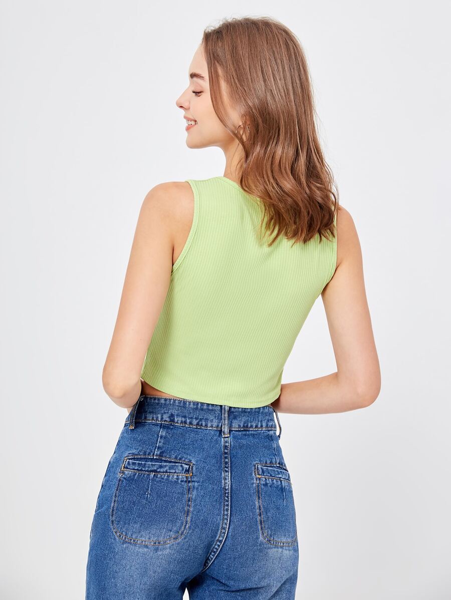 Top sans manches unicolore côtelé