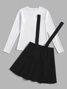 Ensemble jupe tablier et t-shirt unicolore côtelé