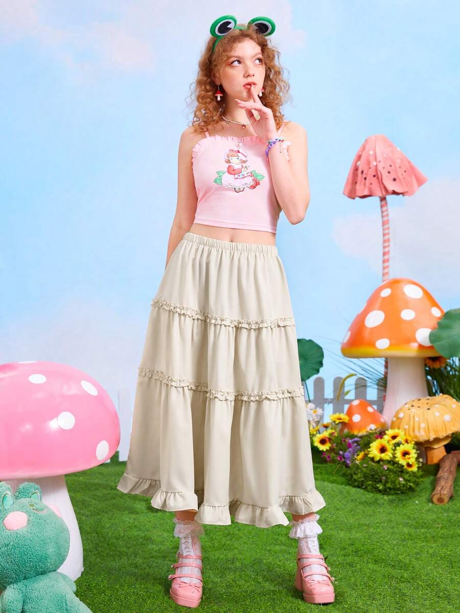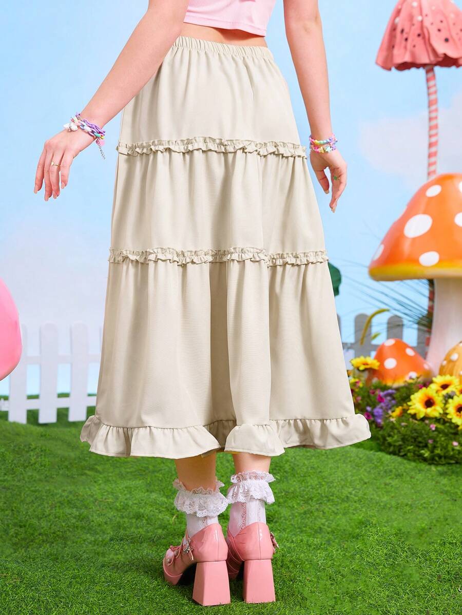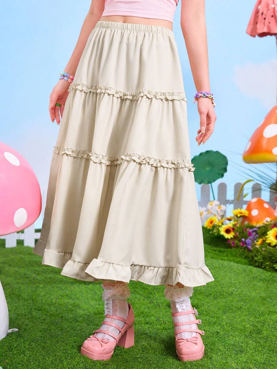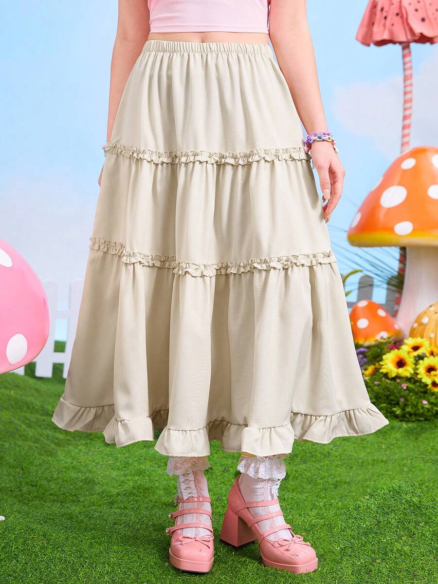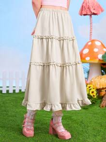 Kawaii Jupe Ourlet à volants Volants Volants superposés Casual Unicolore