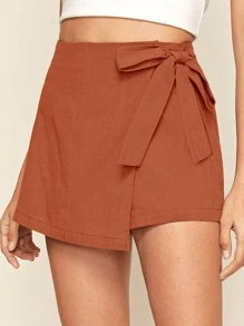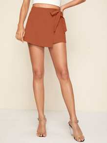 Jupe-short unicolore avec nœud