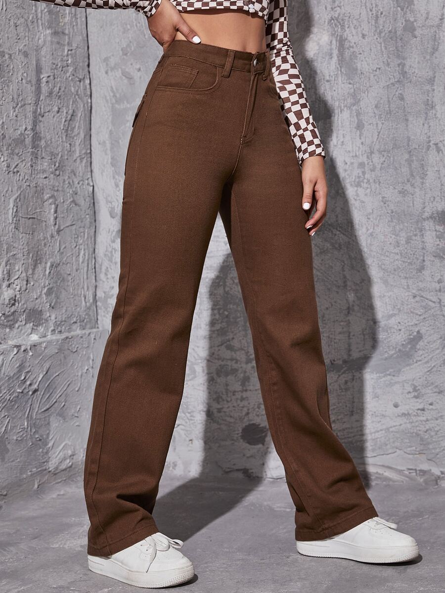 Jean droit unicolore à poche