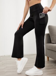 Pantalon de sport unicolore taille haute avec poche de téléphone
