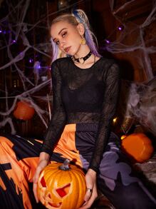 Top transparent avec motif toile d'araignée (sans soutien-gorge)