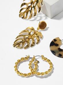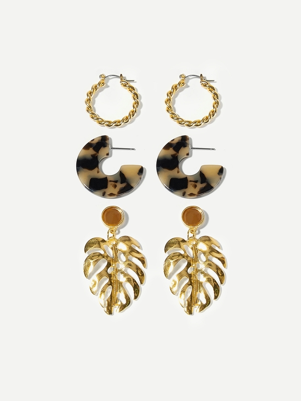 Boucles d'oreilles à détail de spirale & feuille 3 pairs