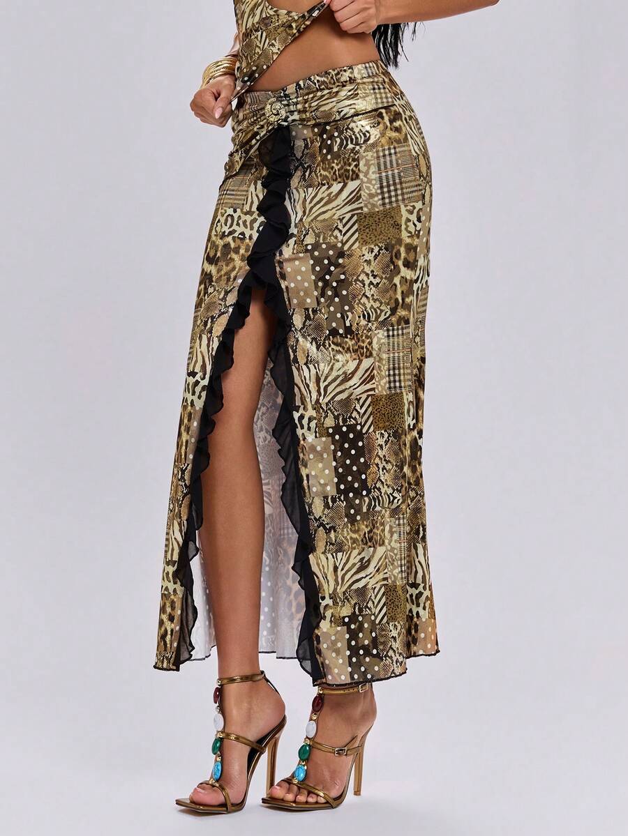 Jupe moulante à volants style vacances de plage sexy style métallique imprimé animal Y2K pour femmes