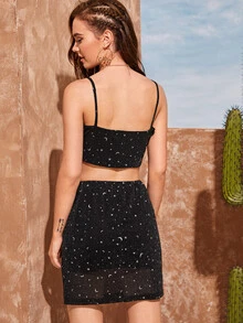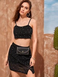 Ensemble jupe fendue et top à fines brides à imprimé