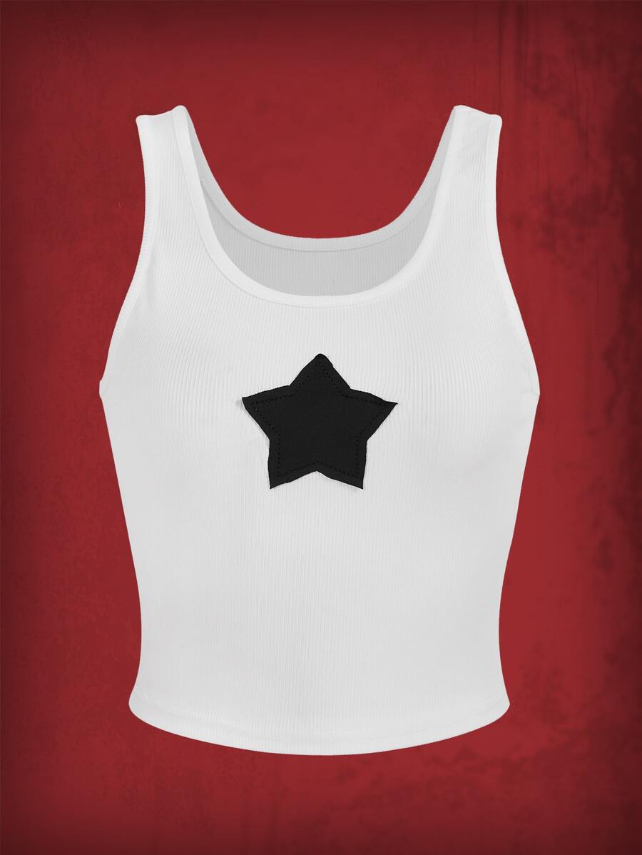 Top sans manches étoile patch côtelé