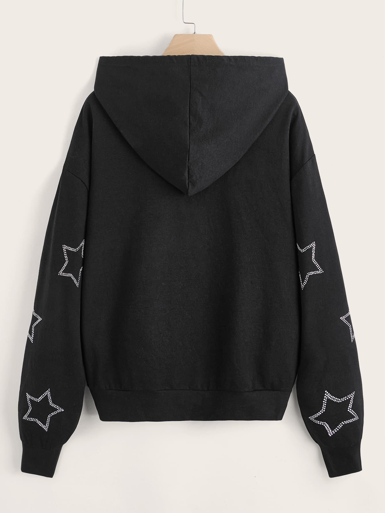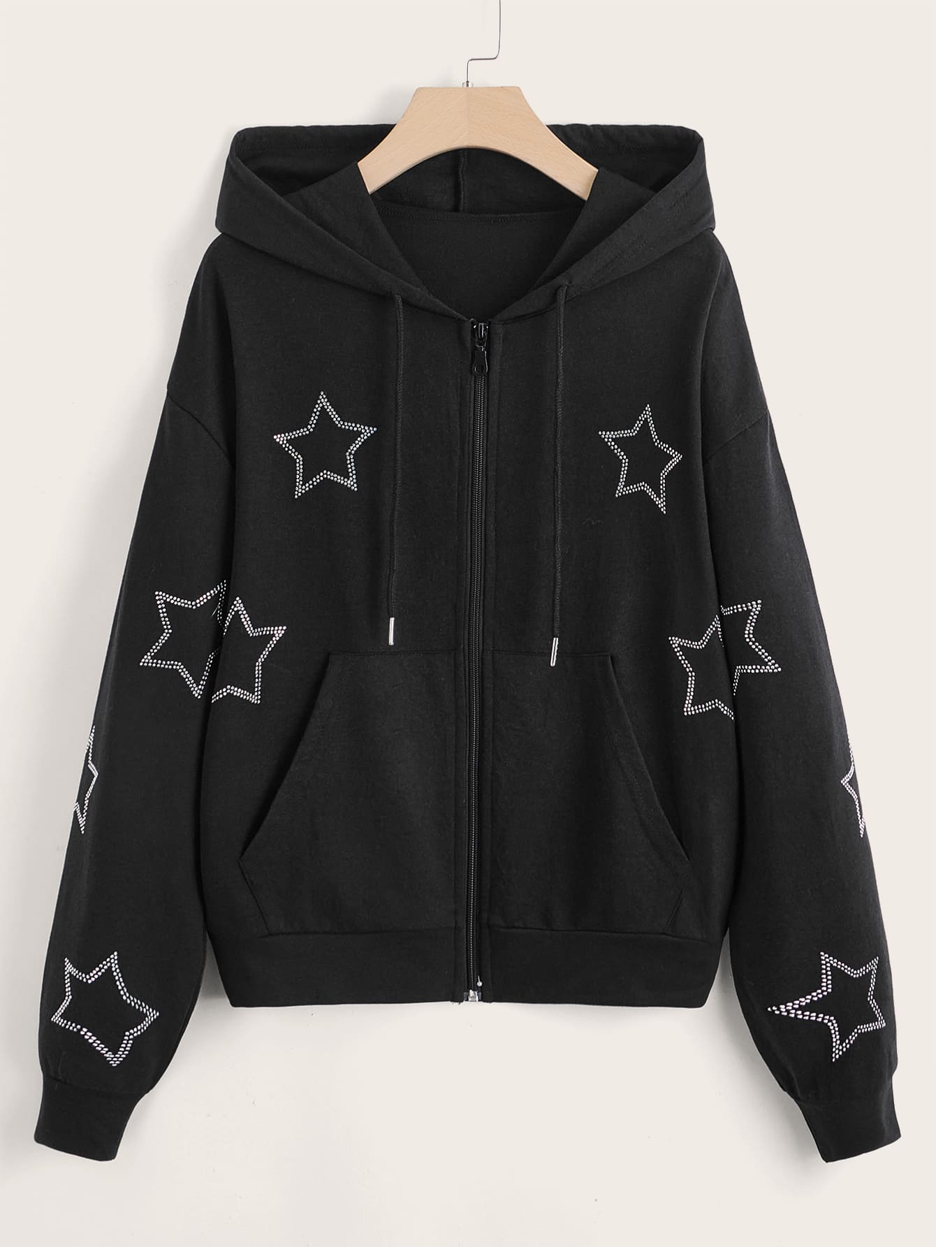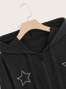Sweat-shirt à capuche à motif étoile à strass zippé à cordon