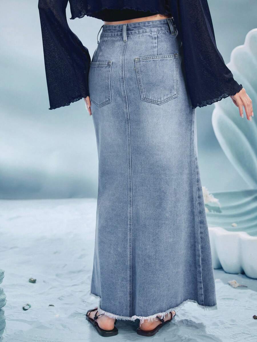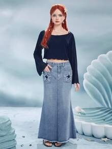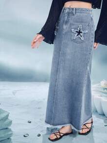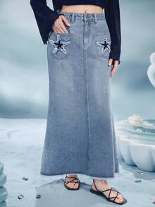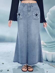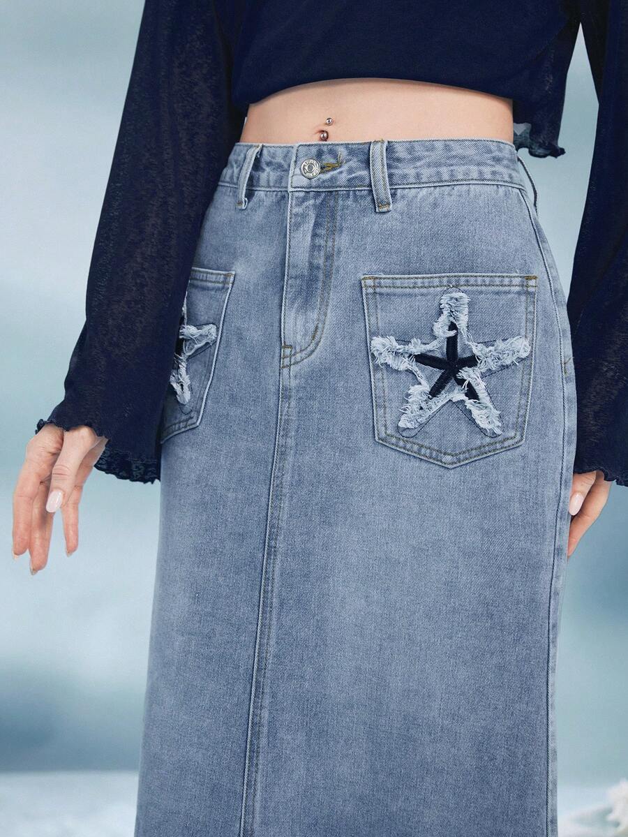 Fairycore Jupe En Jean Imprimé Étoile À Ourlet Effiloché
