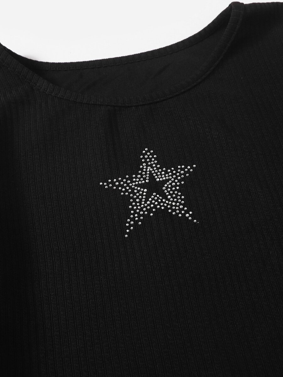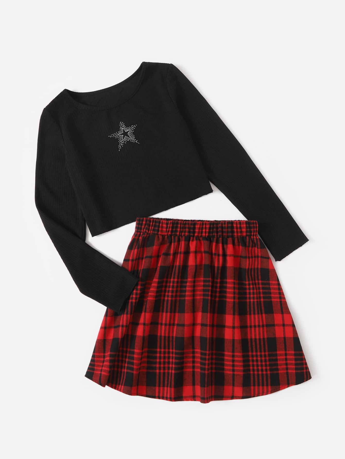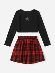 T-shirt court étoile à strass & Jupe à carreaux