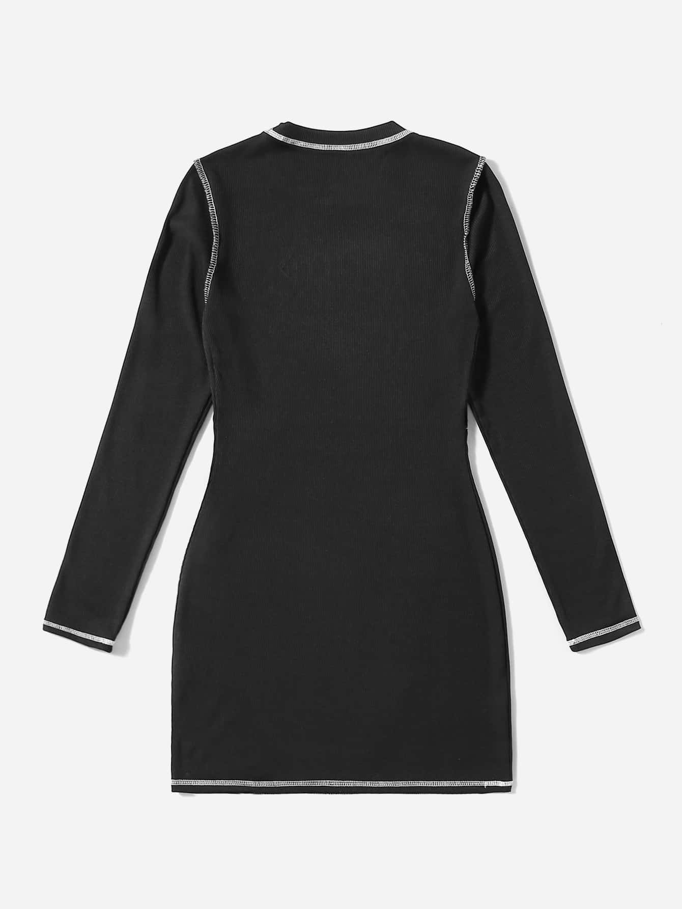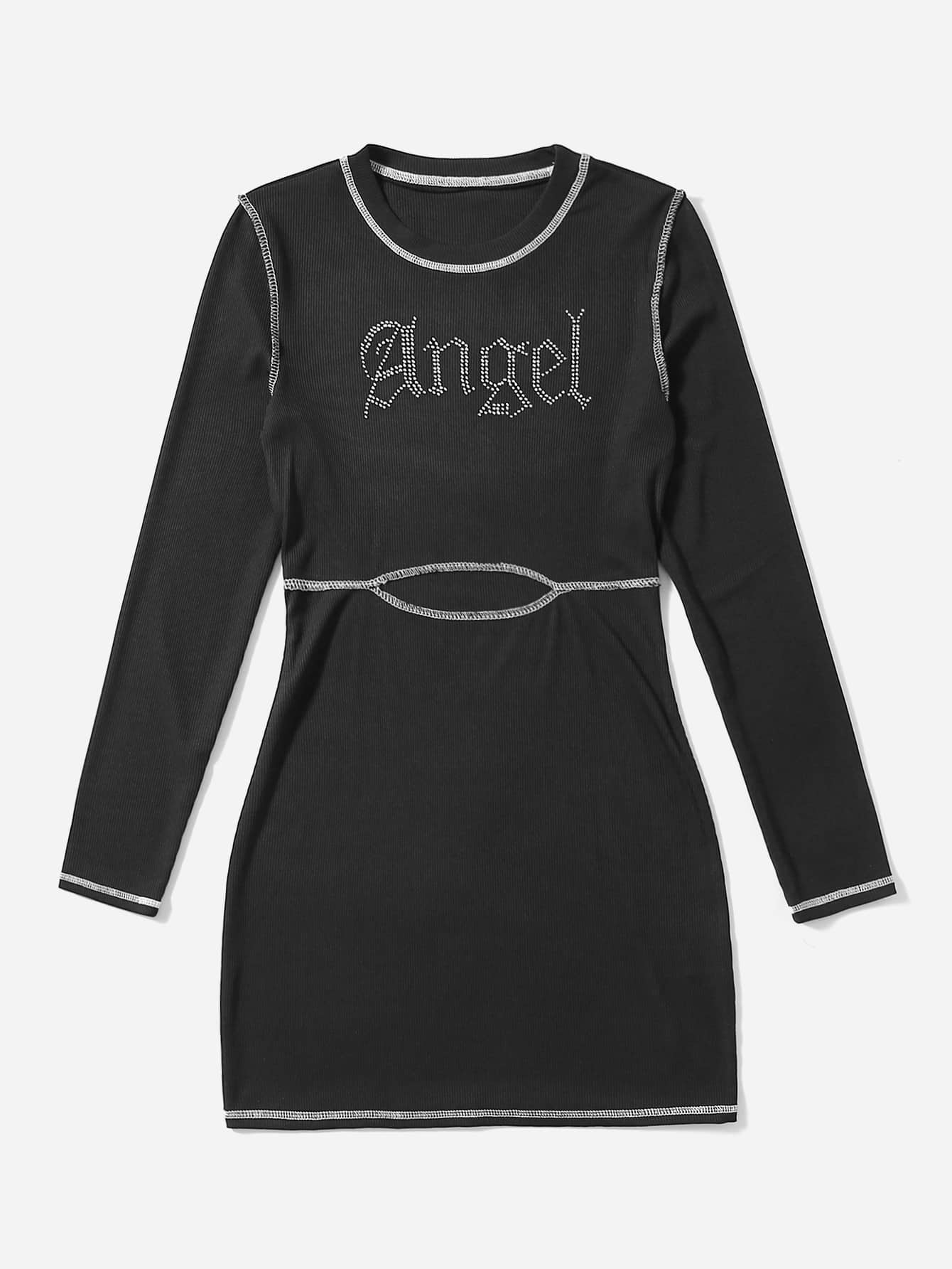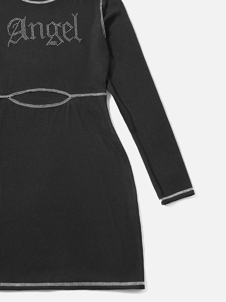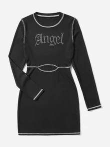 Robe à couture lettre à strass côtelé