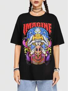 Straight Ahead T-shirt À Manches Courtes Et Col Rond Imprimé Lettre De Dessin Animé