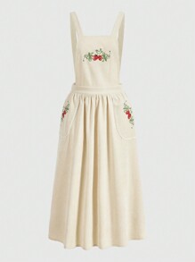 Fairycore Robe Salopette À Broderie Fraise À Poche