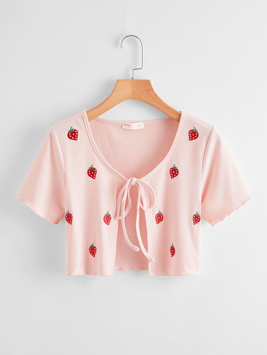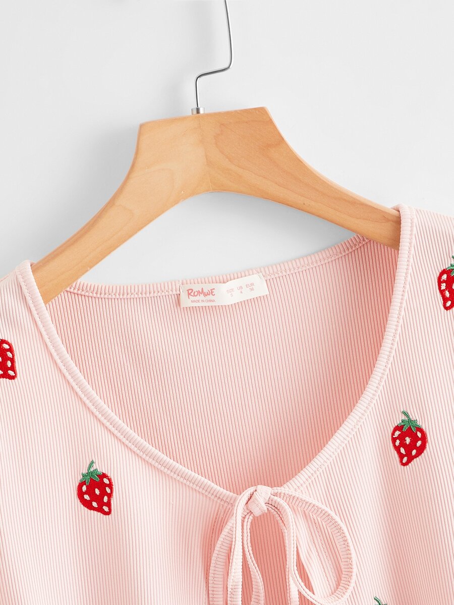 Top court avec broderie et nœud