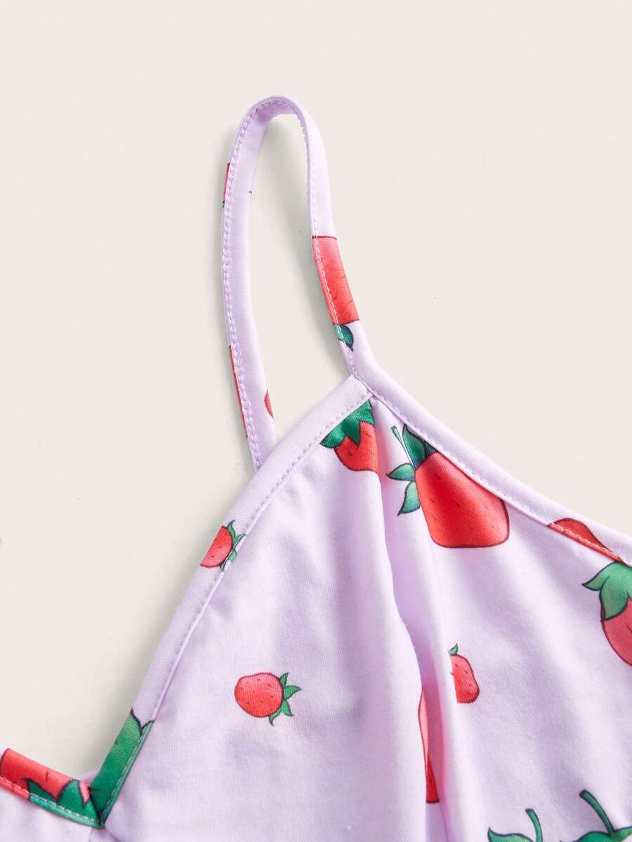 Imprimé Fraise Top À Fines Brides & Pantalon Ensemble De Pyjama