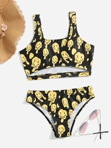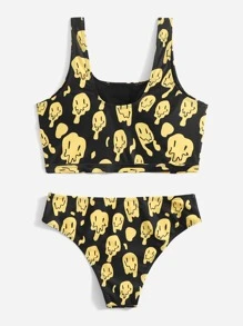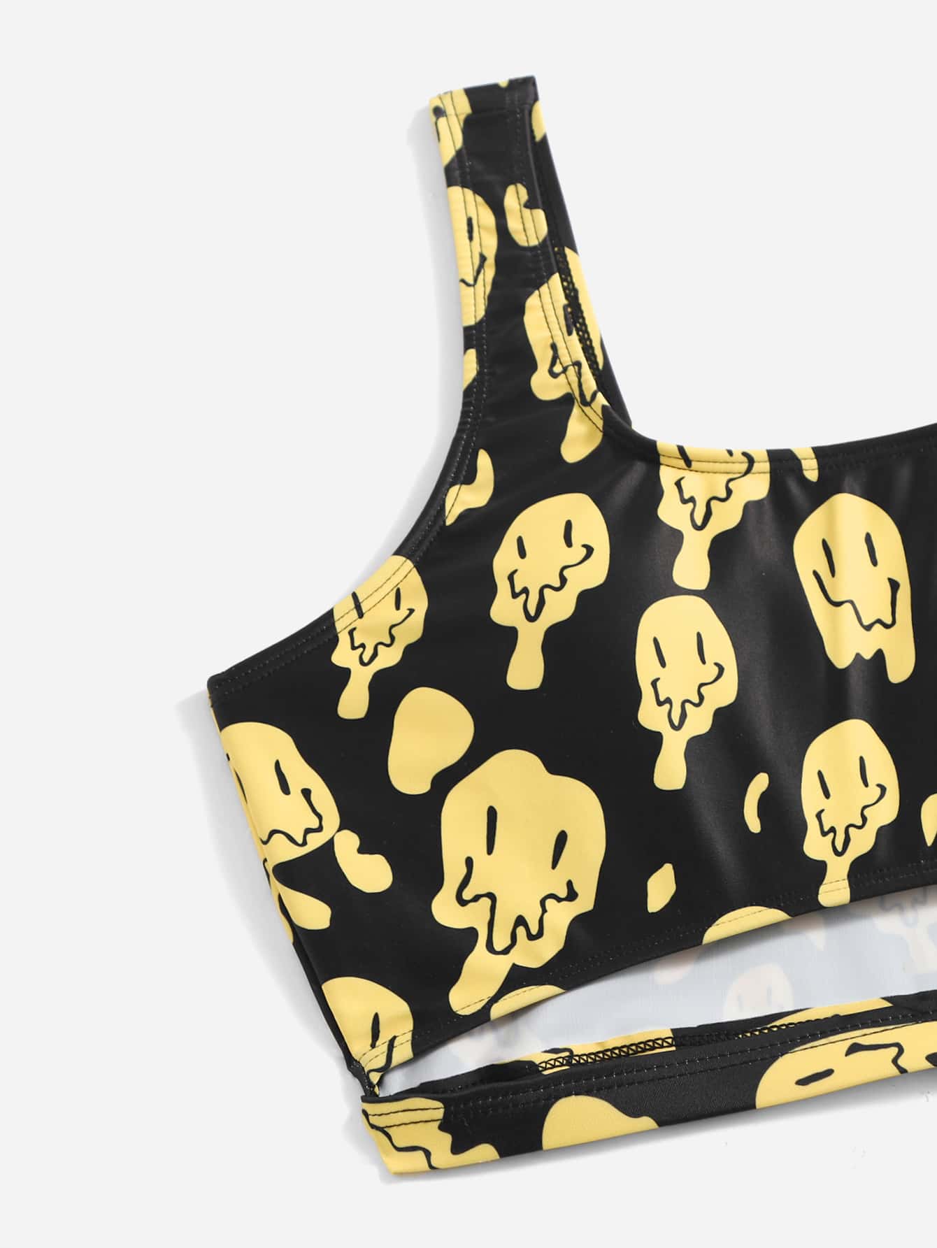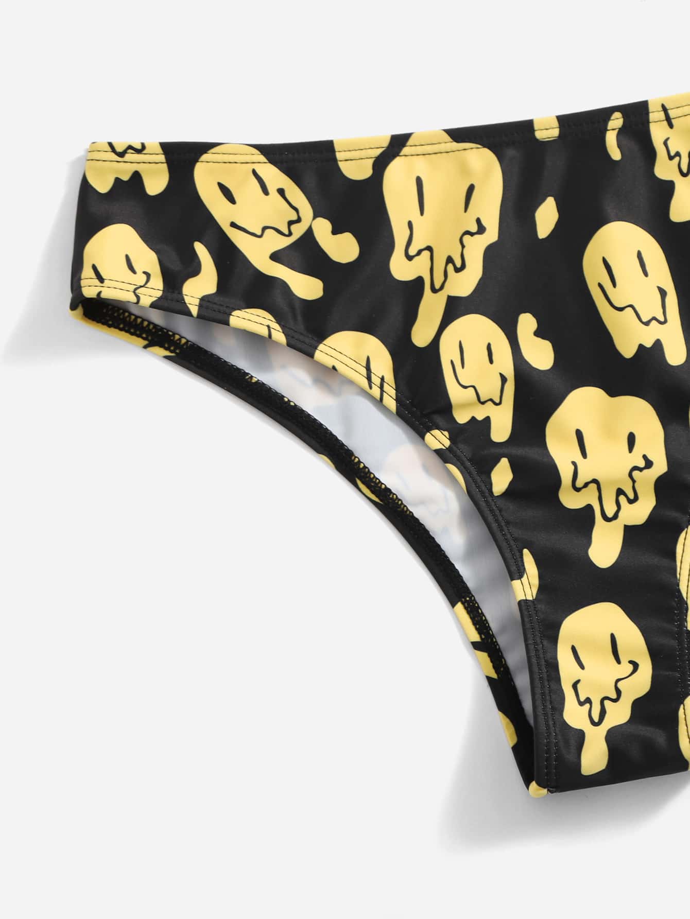 Street Life Bikini à découpe imprimé visage de dessin animé