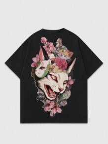 Anime T-shirt décontracté de marque avec une illustration stylisée, des graphiques détaillés et des couleurs vibrantes. L'élément floral ajoute une touche élégante à la conception globale.