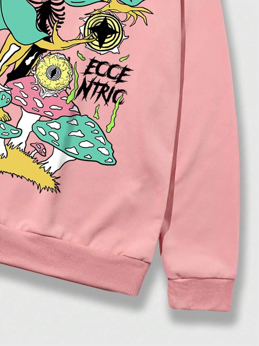 Street Life Homme Sweat-Shirt À Capuche Lettre Et Dessin Animé À Cordon