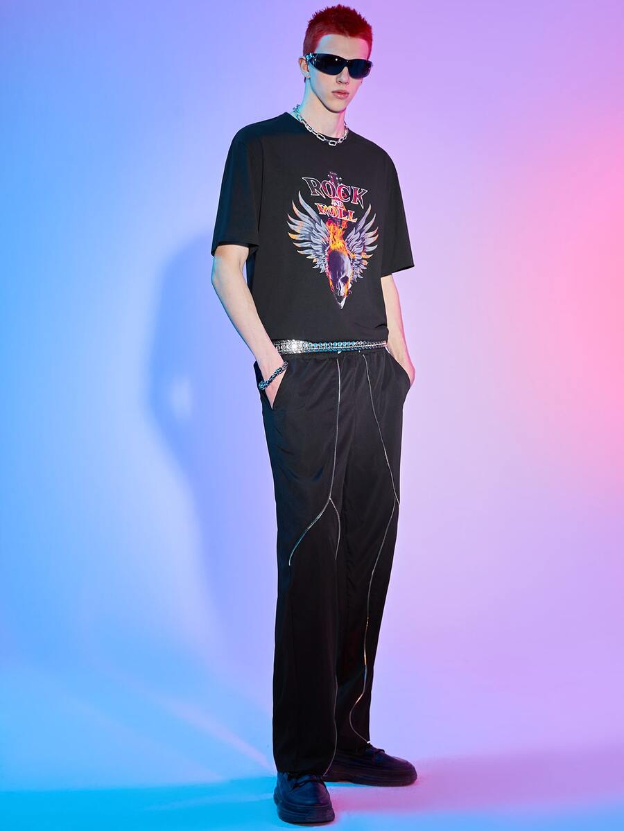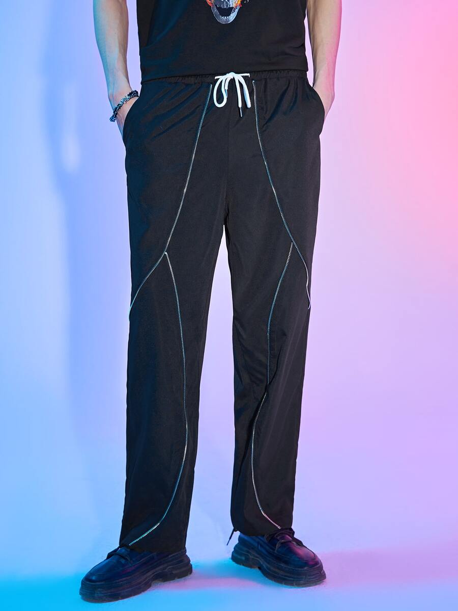 Street Life Pantalons homme Cordon Poche Fermeture éclair Casual Unicolore