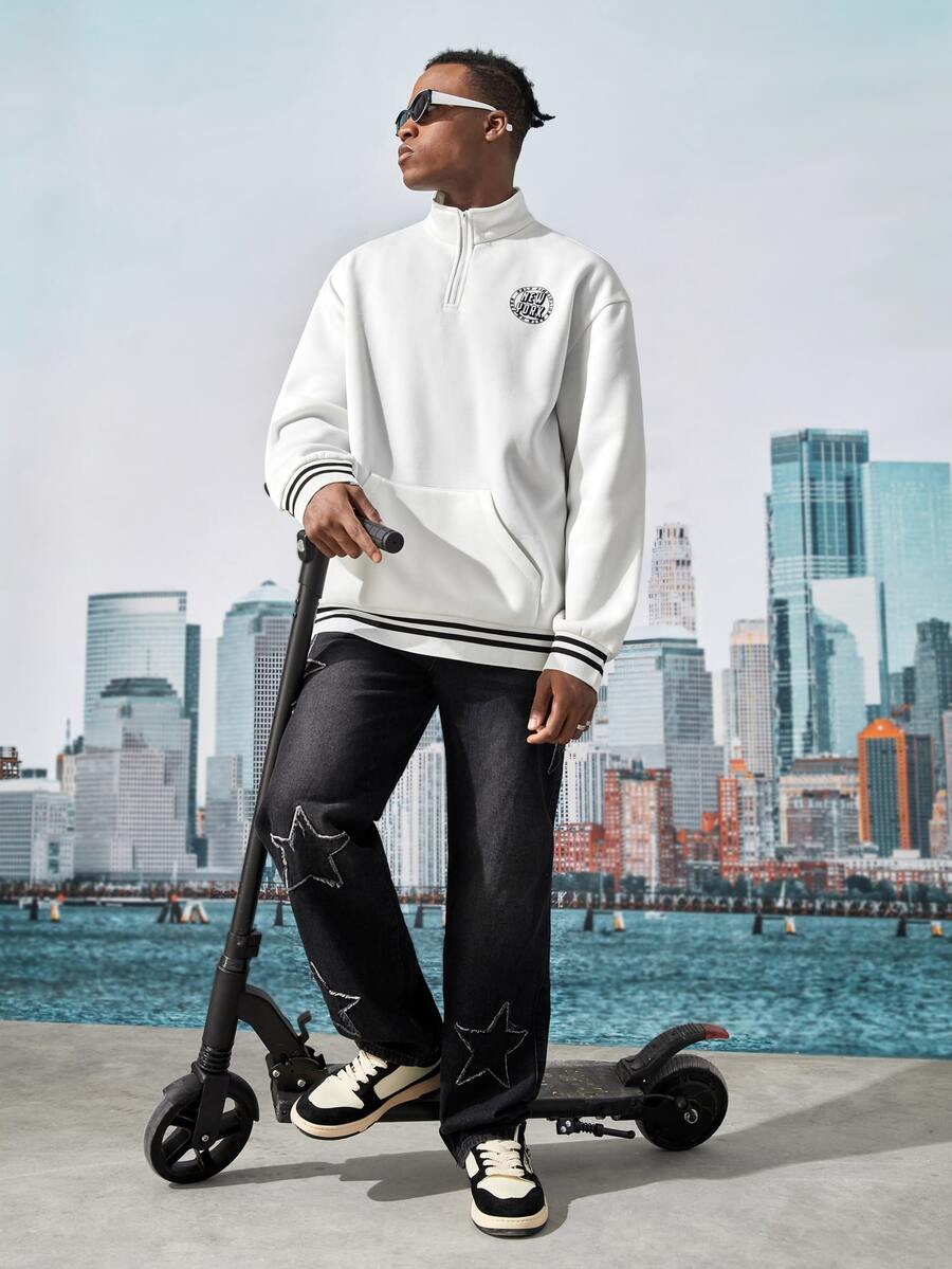 Street Life Homme Sweat-shirt à lettres à ourlet à rayures à poche kangourou
