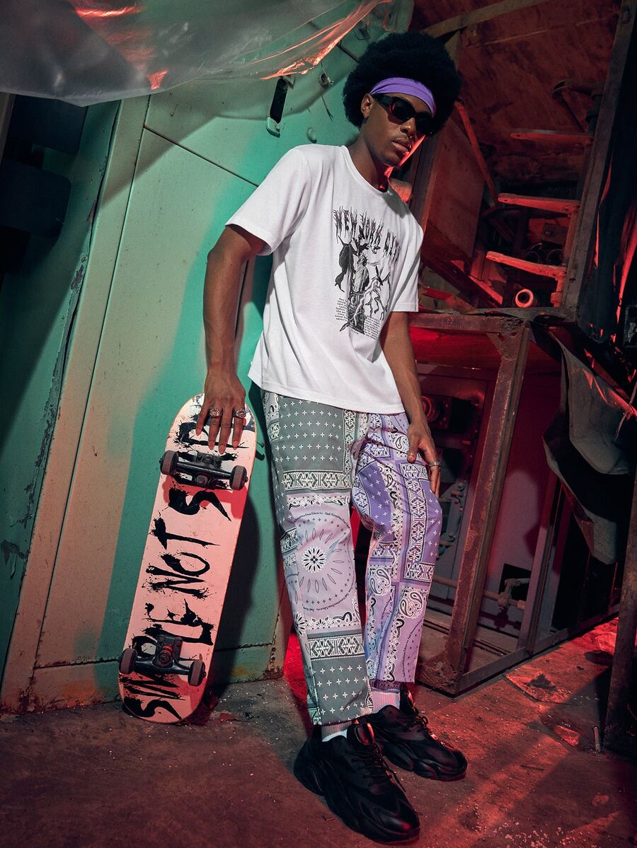 Street Life Homme Pantalon à imprimé foulard à cordon