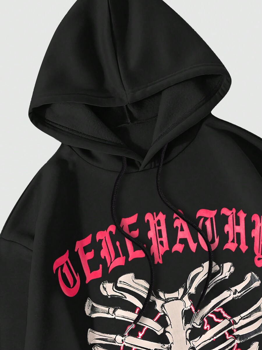 Street Life Homme Sweat-Shirt À Capuche Squelette & Graphique De Slogan Thermique À Cordon