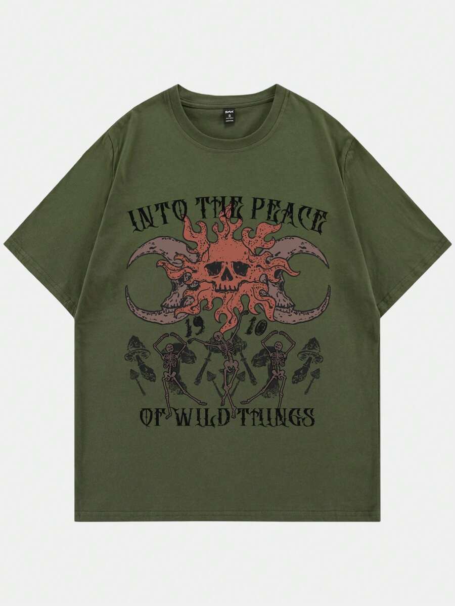 Street Life Homme T-shirt Tête De Mort & Graphique De Slogan