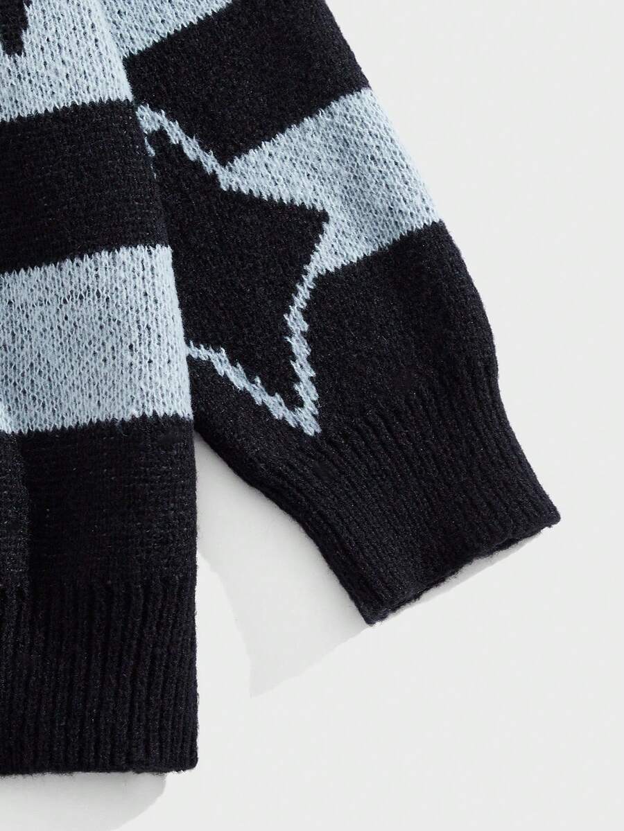 Street Life Homme Pull Motif Étoiles Et Rayures Col En V