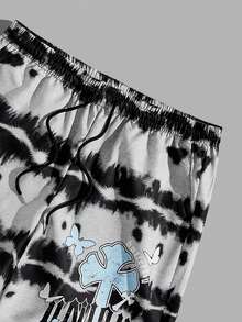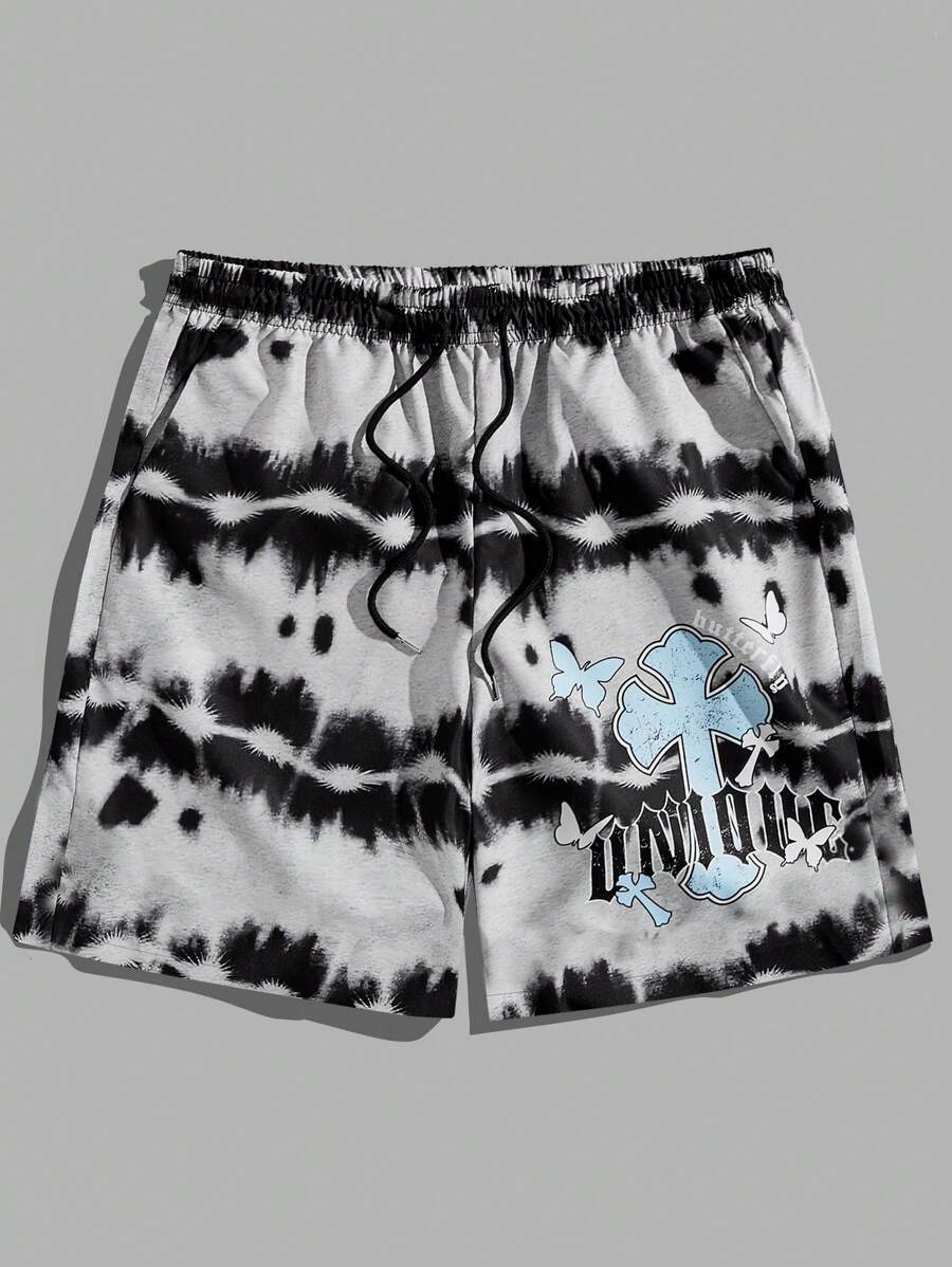 Street Life Homme Short À Cordon Tie Dye Lettre & Croisé Imprimé À Ourlet À Rayures