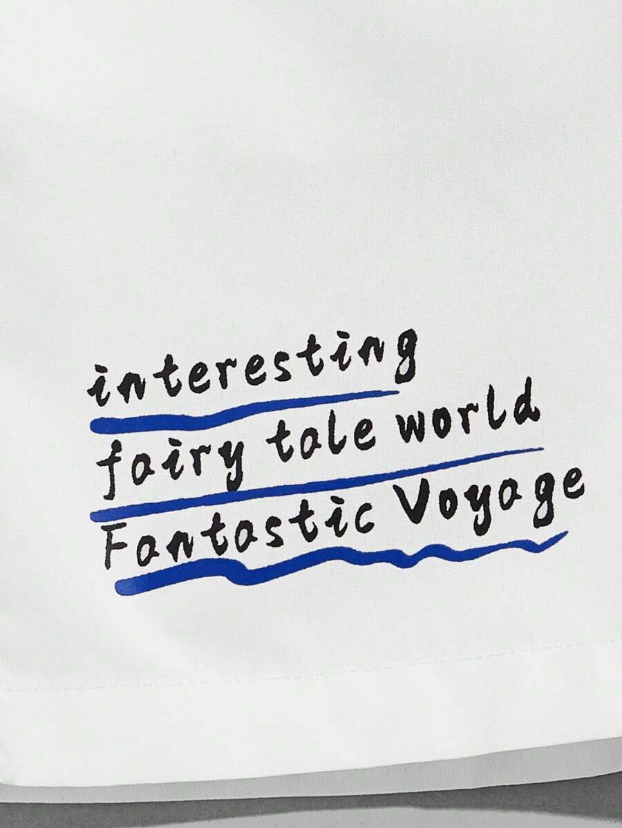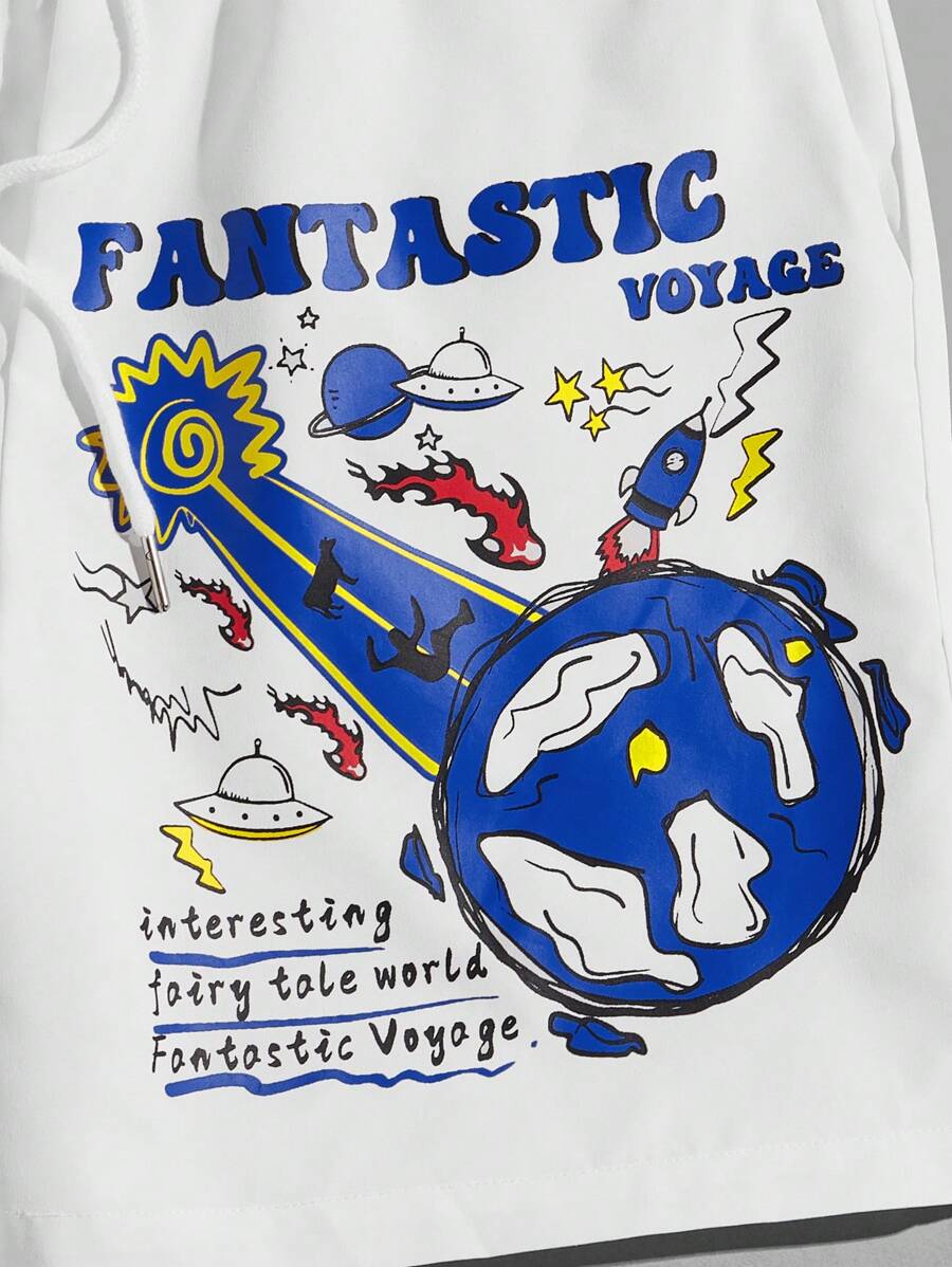 Street Life Short à cordon de serrage avec graphisme de dessin animé et slogan, pour l'école