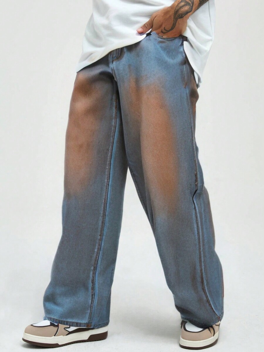 Street Life Jeans casual ample avec poches à boutons contrastants pour hommes