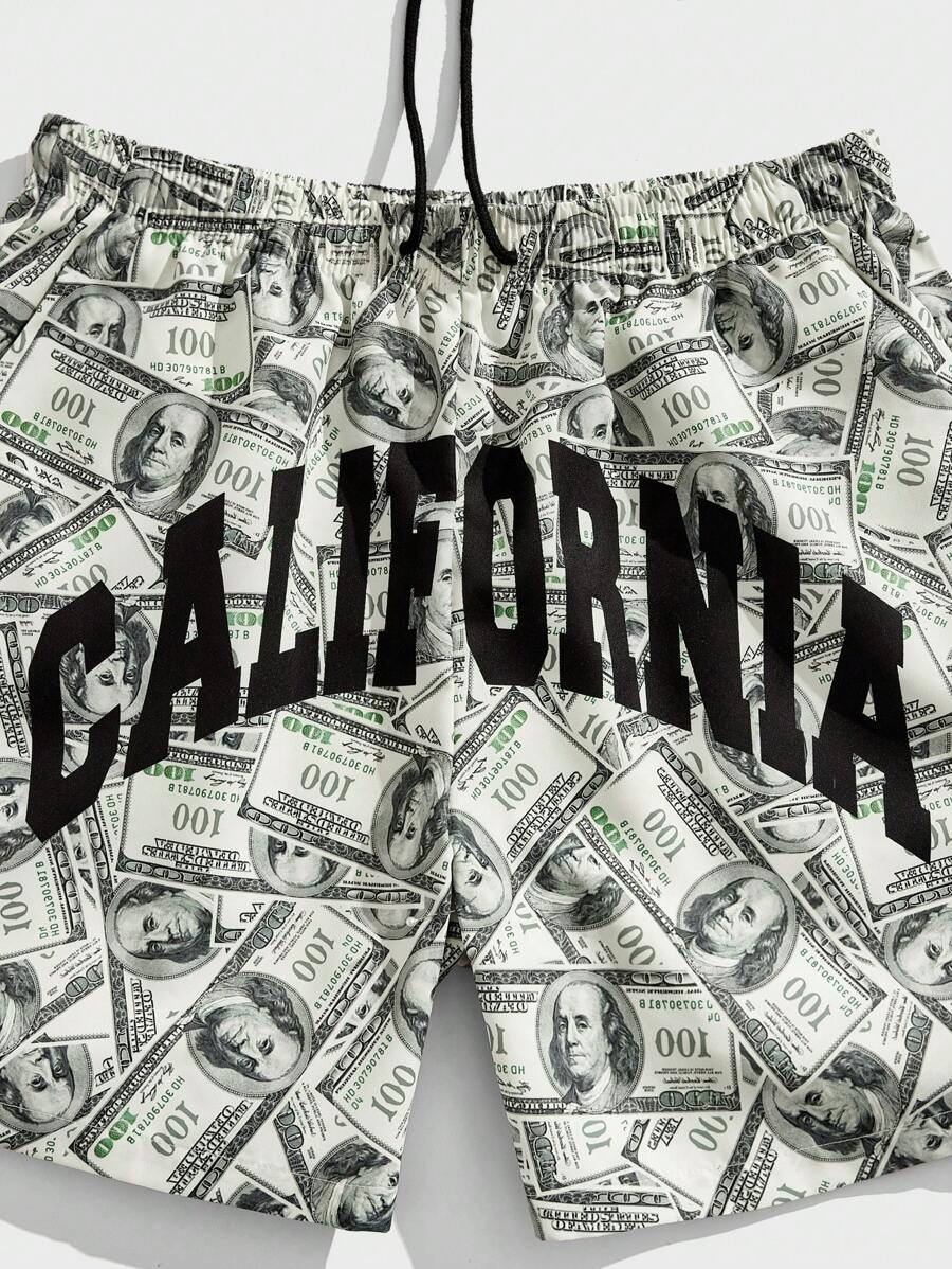 Street Life Short à cordon de serrage à la taille avec graphique de dollars et de lettres, pour l'école