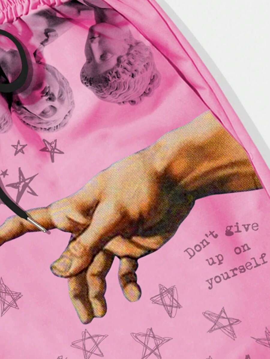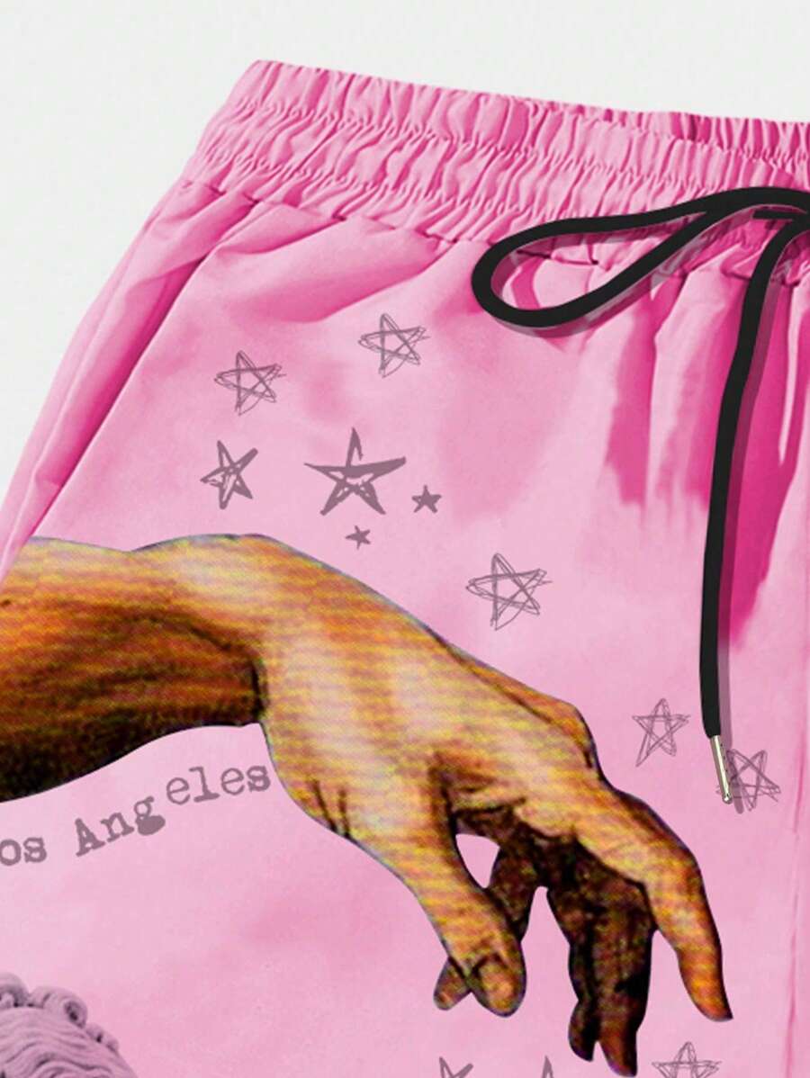 Street Life Short en tissu avec imprimé de silhouette d'homme, convient pour le port quotidien au printemps et en été, école