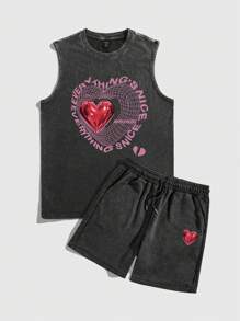 Street Life Ensemble débardeur et short imprimé cœur pour homme, décontracté pour le printemps/été
