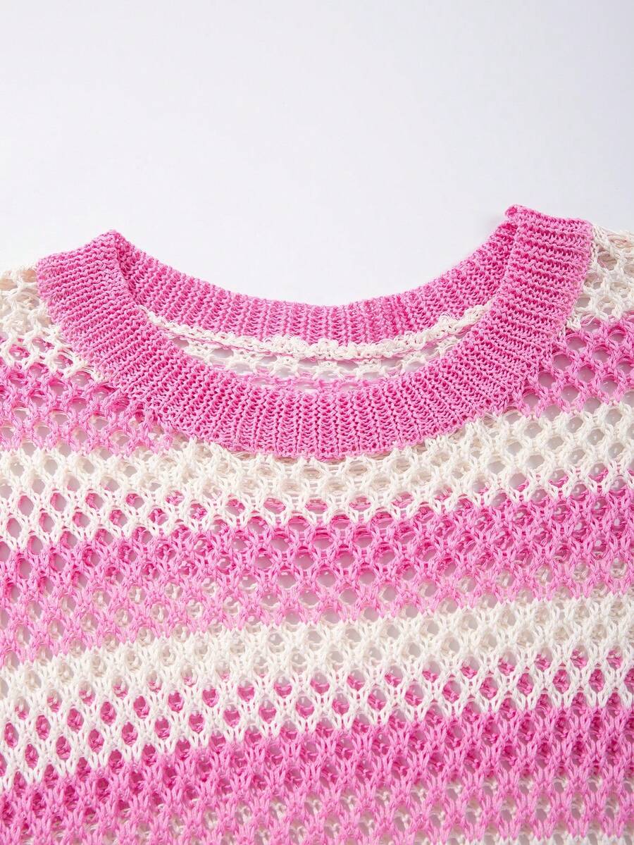 Street Life Top à manches courtes col rond en maille rayée ajourée avec franges pour homme, été