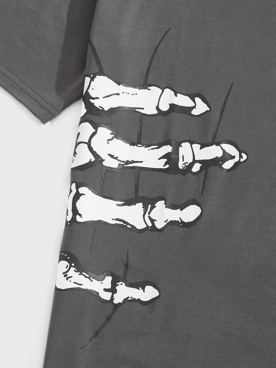 Street Life T-shirt graphique avec motif lettre et squelette pour homme, pour Halloween, l'école