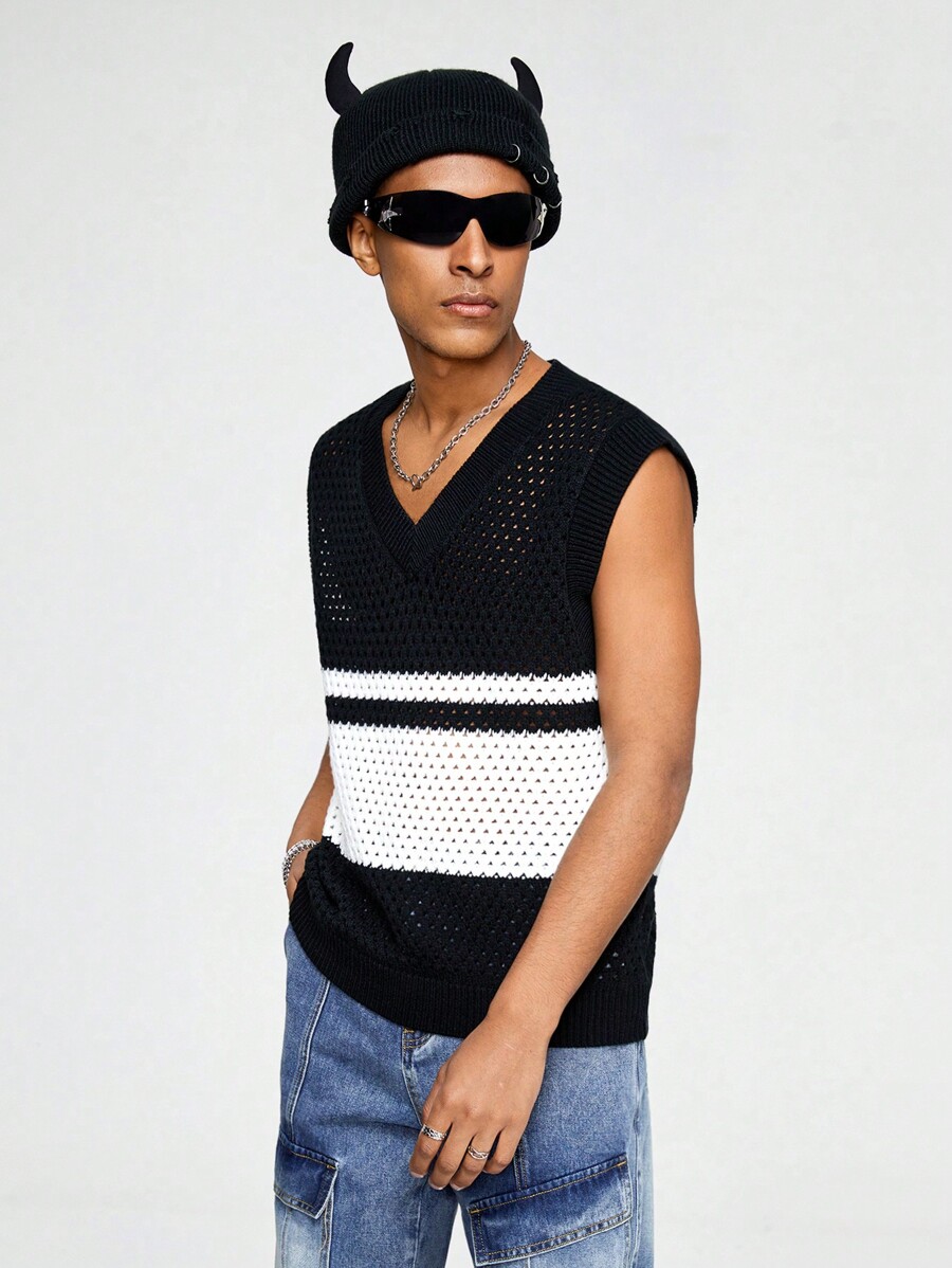 Street Life Pull Sans Manches En Tricot Pour Homme À Mailles Creuses