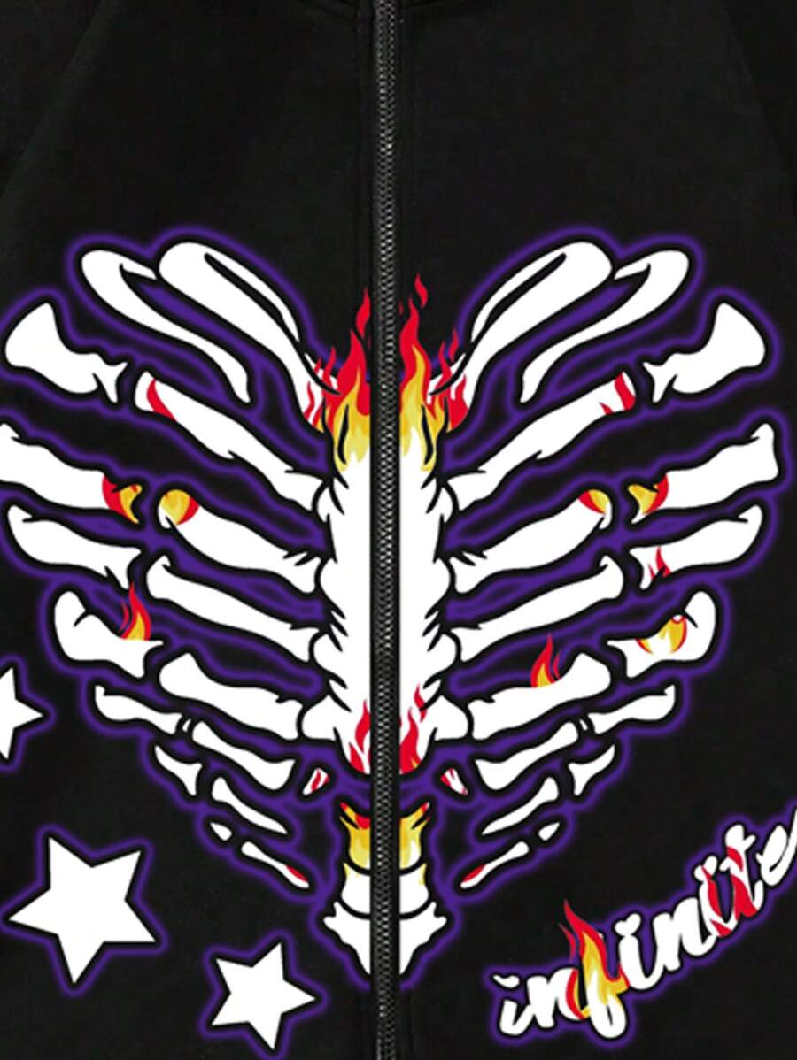 Street Life sweat-shirt à capuche zippé avec imprimé squelette pour homme, à porter au quotidien ou pour Halloween