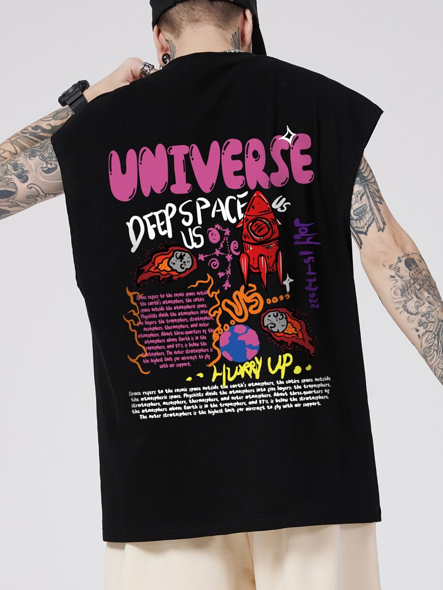Street Life Débardeur à motif slogan et dessin animé pour hommes, école