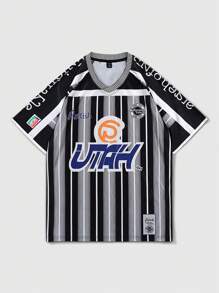 Street Life T-shirt à manches courtes imprimé de soccer pour hommes avec slogan, convient pour un usage quotidien au printemps et en été