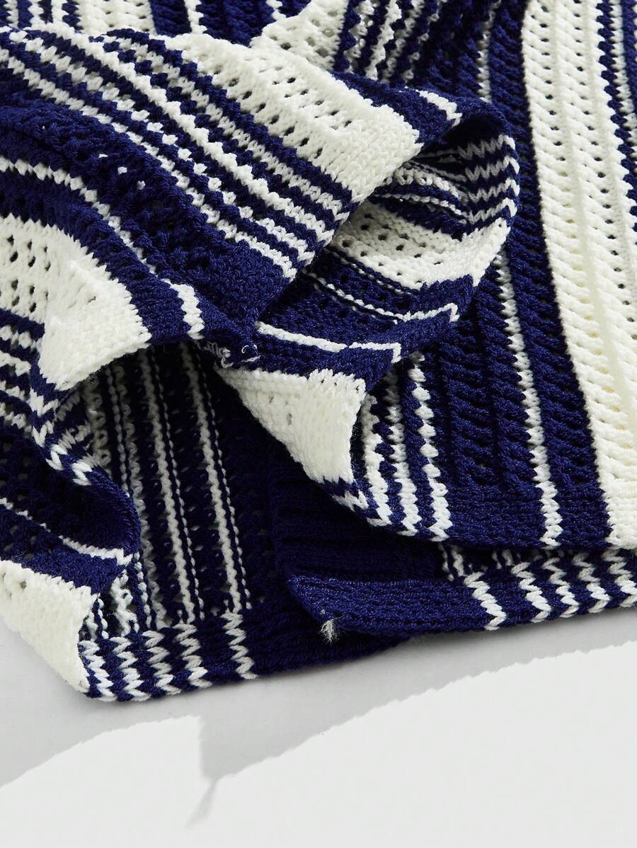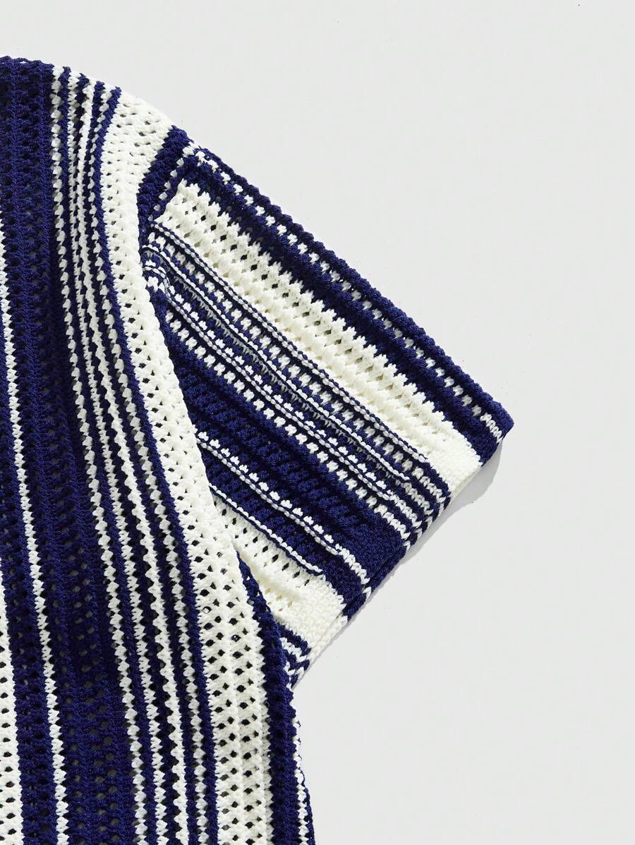 Street Life Top tricoté décontracté à manches courtes à rayures et simple boutonnage pour homme