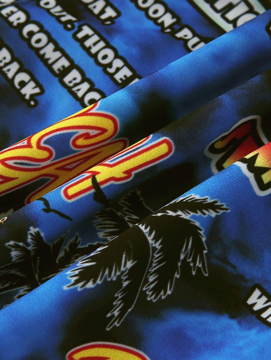 Street Life Shorts de taille à cordon de serrage à impression de slogan d'arbre de noix de coco pour homme en vacances