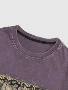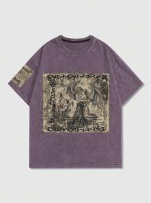 Street Life T-shirt à manches courtes col rond homme, style rétro avec lavage acide, convient pour le printemps/été
