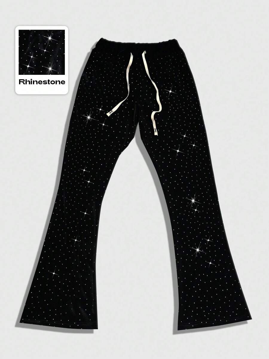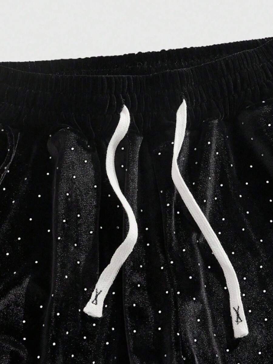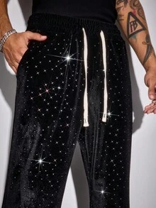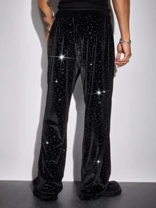 Street Life Pantalon de survêtement droit à taille cordonnée avec imprimé métallique en velours, mode automne/hiver pour homme