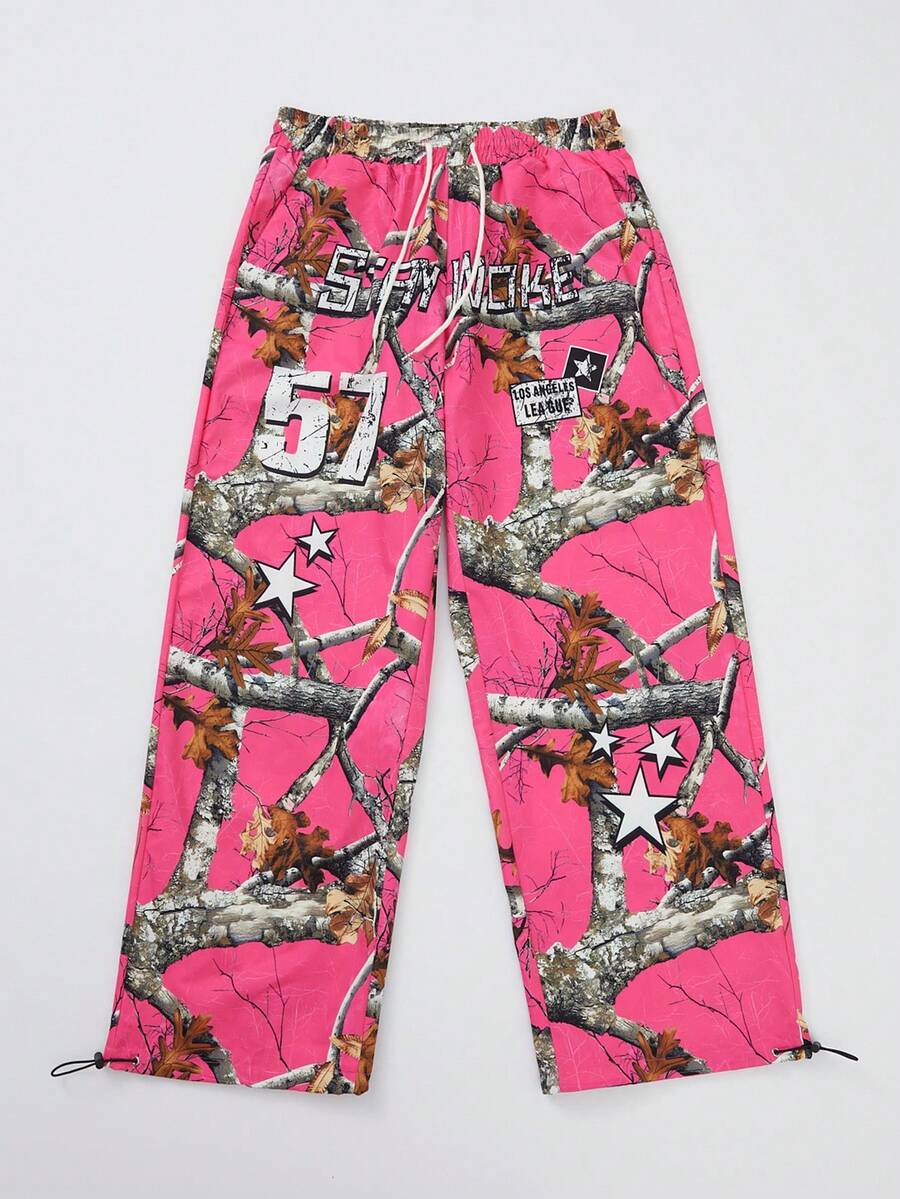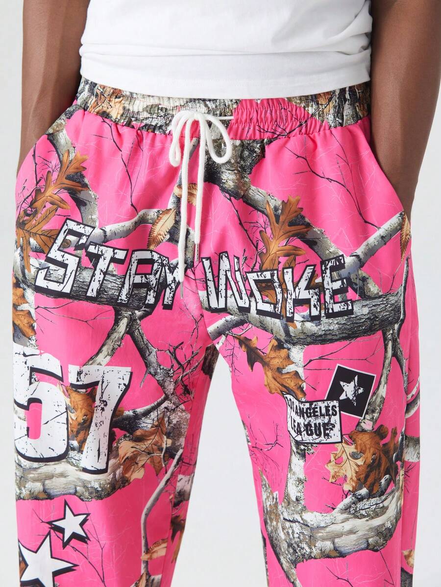 Street Life Pantalon ample à taille coulissante avec imprimé de branche pour hommes