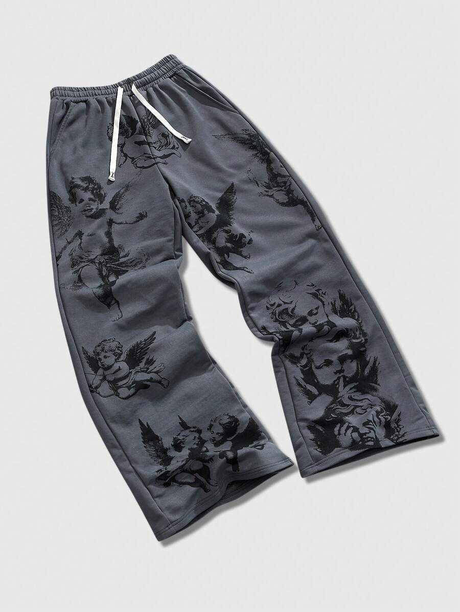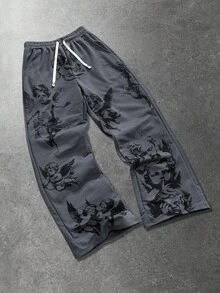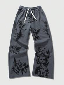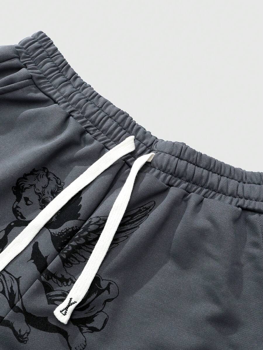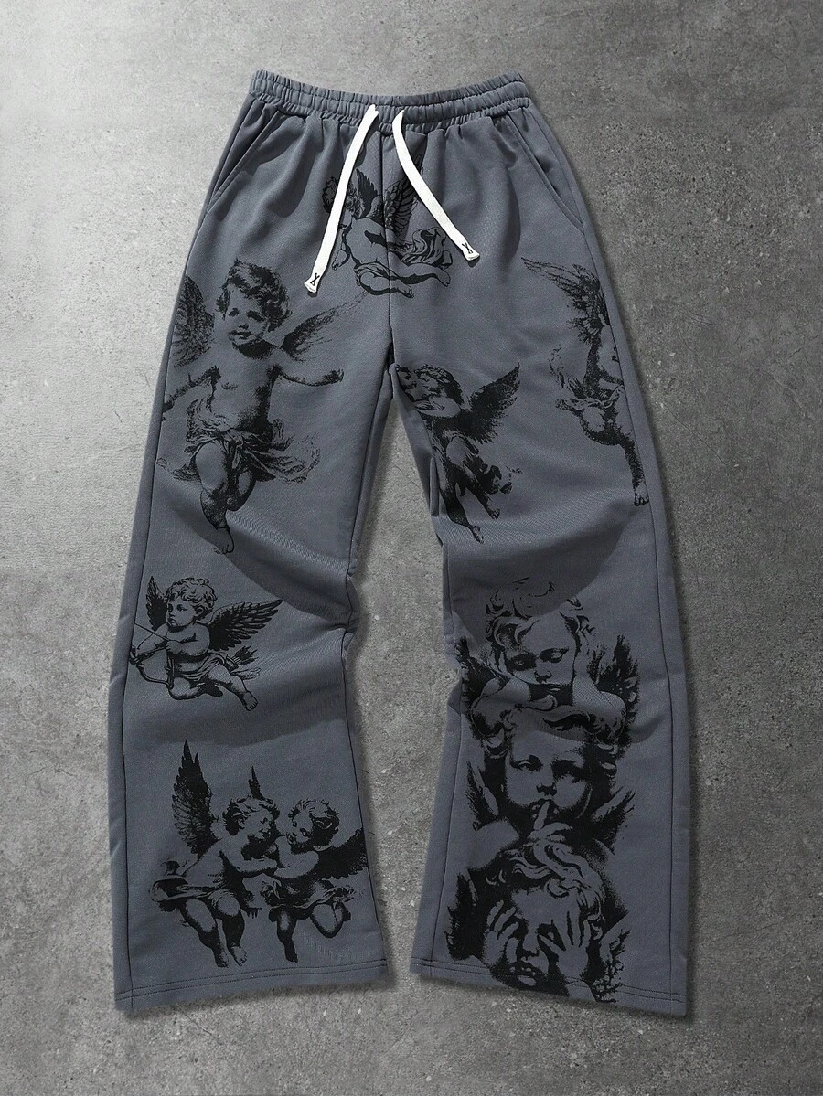 Street Life Pantalon de survêtement casual pour hommes avec cordon de serrage à la taille et imprimé ange