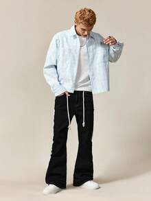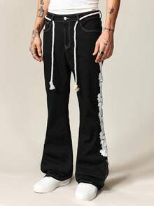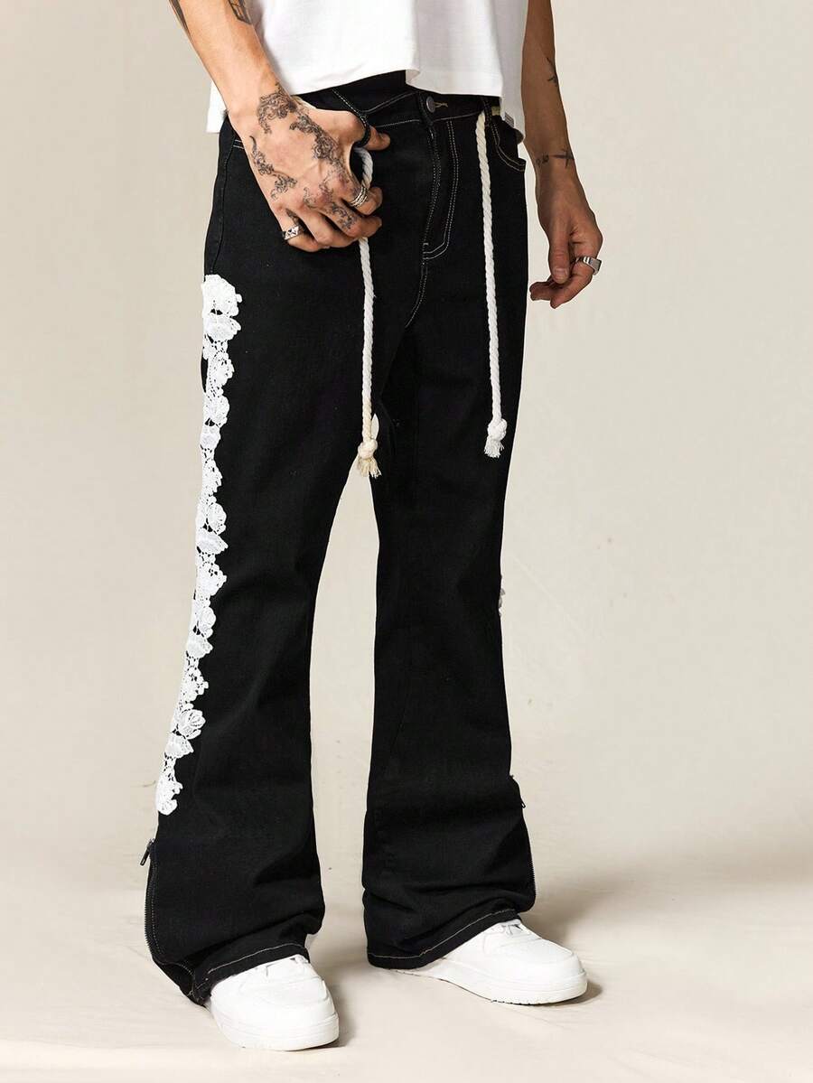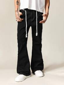 Street Life Jeans décontractés style rue pour hommes avec taille à cordon et jambes évasées en couches