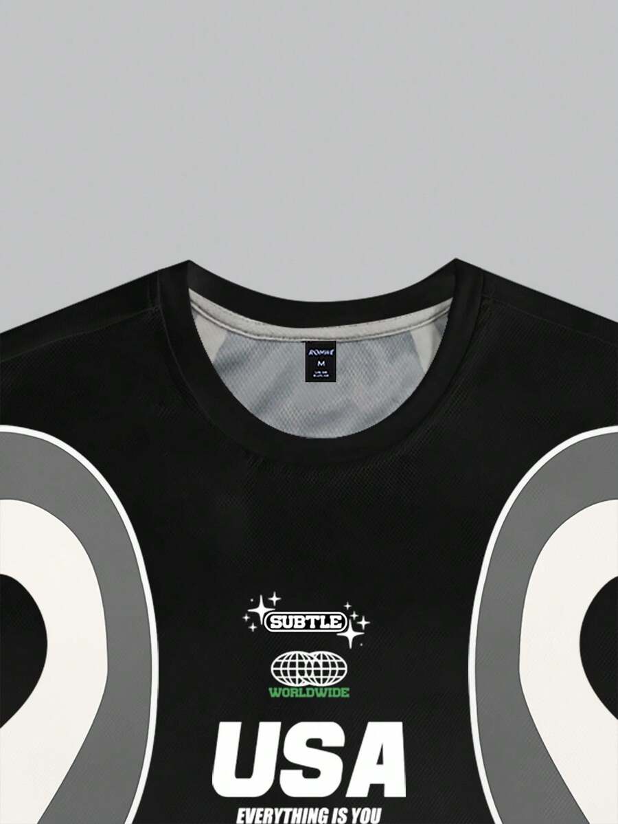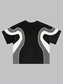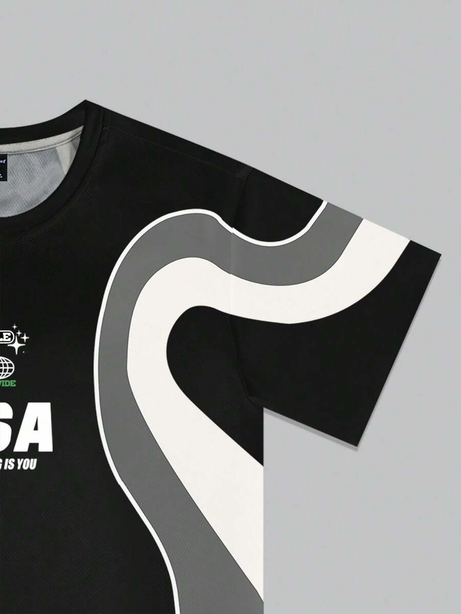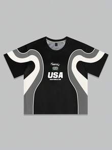 Prep T-shirt décontracté à manches courtes avec bloc de couleurs pour hommes, été