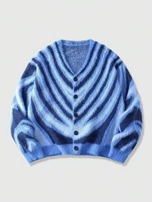 Street Life Cardigan casual à manches longues avec blocs de couleurs et rayures pour hommes, automne/hiver